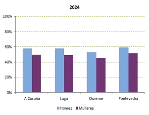 - ¿É maior a taxa de actividade feminina ou a masculina?