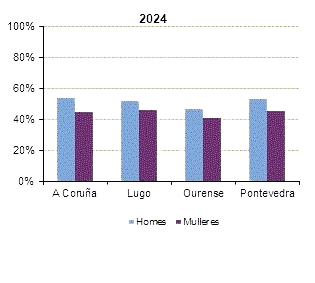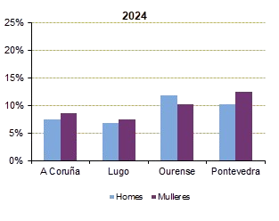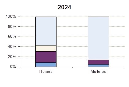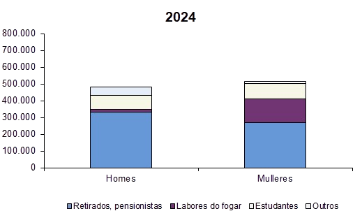 - ¿Cal é a clase de inactividade máis habitual entre os homes e as mulleres en 2024?