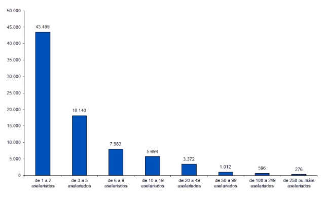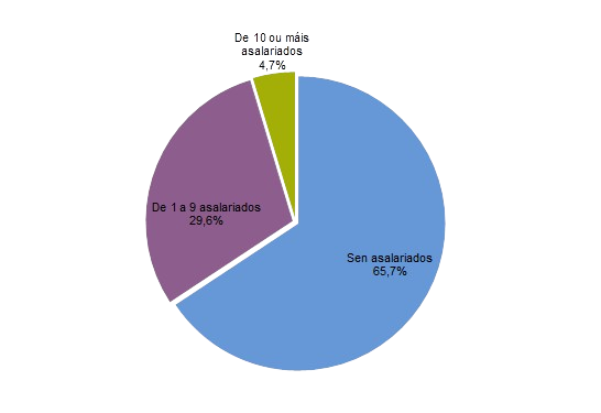 As empresas sen asalariados son, polo tanto, o tipo de empresas máis frecuente en Galicia e representan un 65,7% do total de empresas.