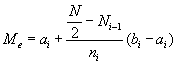 Exemplo: no exemplo 2 da táboa de frecuencias, n/2=636.139,5, polo que o intervalo ou clase mediana é de 12.000 a 21.000 euros.Podemos, ou ben considerar como mediana a marca de clase do intervalo 16.500, ou ben calcular a mediana aplicando a fórmula anterior:
