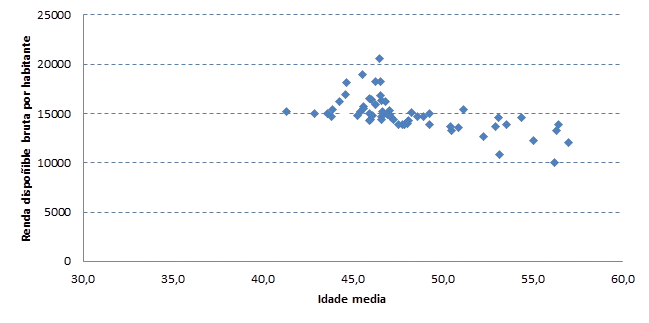 así que a nosa variable explicada é a renda dispoñible bruta e a nosa variable explicativa é a idade media: