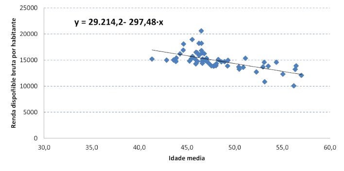 No noso caso o máis lóxico é pensar que a renda dispoñible bruta por habitante de cada concello depende da idade media do concello,