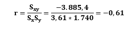 No noso exemplo, o coeficiente de correlación é - 0,61. Polo tanto, hai motivos para pensar nunha certa relación lineal negativa.