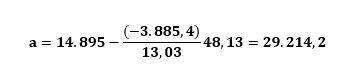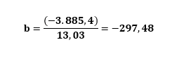 Utilizando métodos matemáticos que non imos explicar agora, obtemos os coeficientes da recta que minimizan a expresión anterior e que son: