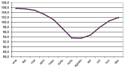 Cadro 7. Compoñente estacional da serie polo método das medias móbiles