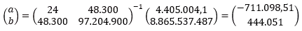 Se empregamos o cadro 2 axustamos estas medias a unha recta polo método dos mínimos cadrados