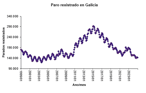 Gráfico 1. Representación gráfica da serie de paro rexistrado