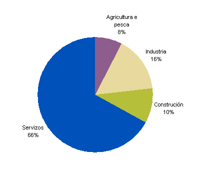 Para rematar pinchamos no botón "Finalizar" e obtemos a gráfica coa distribución da poboación ocupada galega segundo os sectores de actividade para o ano 2010.