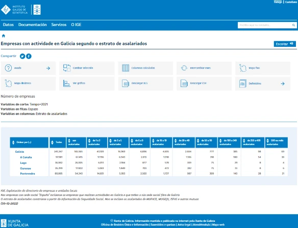 As táboas do banco de datos do Instituto Galego de Estatística permiten ao usuario seleccionar os valores que quere incluír na consulta e obter táboas de resultados en función das súas necesidades.